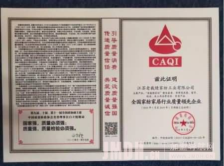 近日,江苏老裁缝家纺工业有限公司收到了CAQI中国质量检验协会的证书,并荣获“全国家纺家居行业质量领先企业”和“全国质量检验稳定合格产品”两项殊荣。
