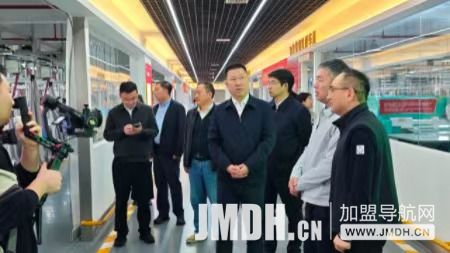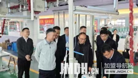 随后,调研组走进老裁缝智能化生产车间。现代化的吊挂生产线有序运转,工人们在各自工位上专注操作。